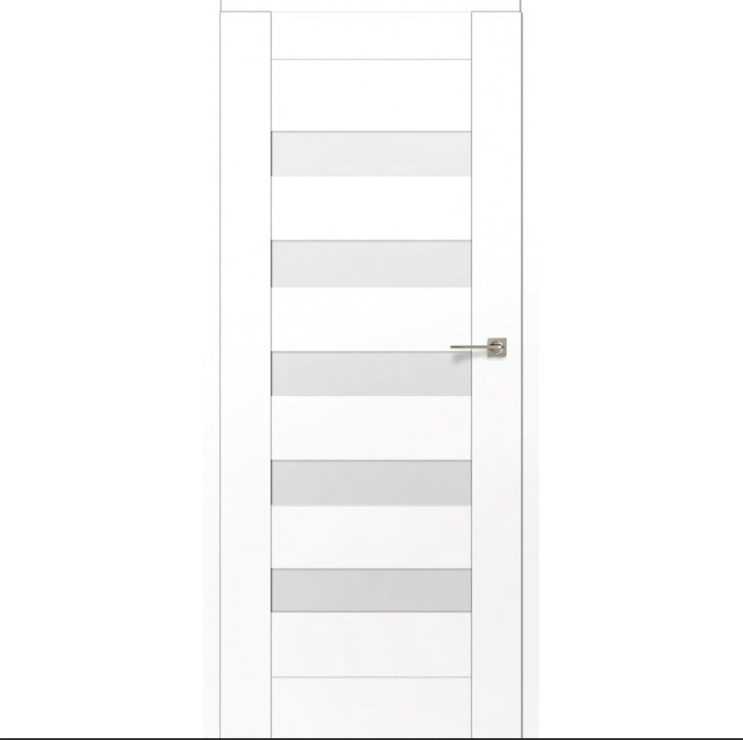 Durų varčios komplektaciją sudaro: nepermatomas, šviesai pralaidus, šviesaus atspalvio iš abiejų pusių lygus stiklas x 5 vnt.; integruota magnetinė DIN standarto vidaus durų spyna x 1 vnt.
