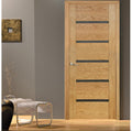 Durų varčios komplektaciją sudaro: nepermatomas, šviesai pralaidus, matinis, šviesiai balto atspalvio stiklas "Matelux" x 5 vnt.; skandinaviško standarto vidaus durų WC spyna x 1 vnt.